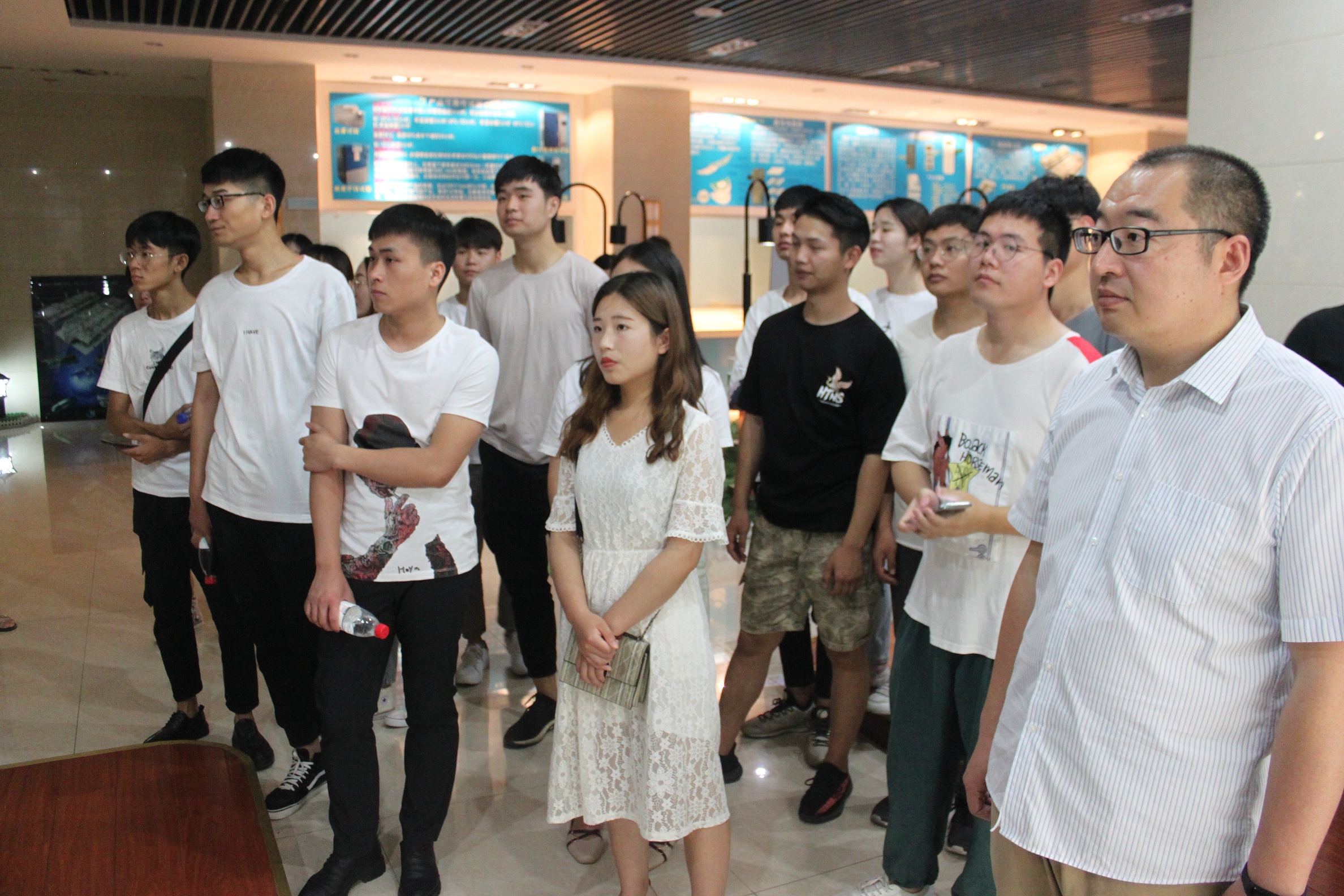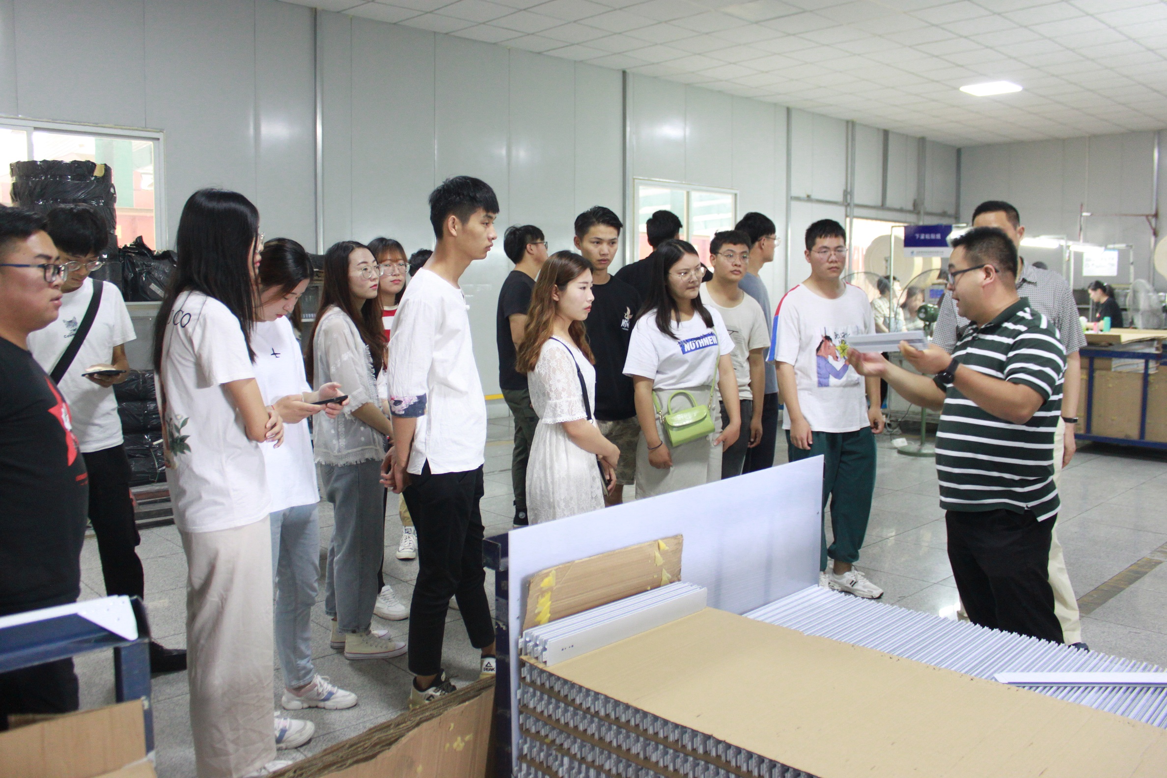 參加此次接待工作的有綜合管理部長葉、行政經理馬向明,以及各生產部門負責人。同學們在公司行政大廳集合,葉部長對其介紹了公司的發展狀況與發展歷程,并對其約法三章:不掉隊、不亂碰、不隨意走動。