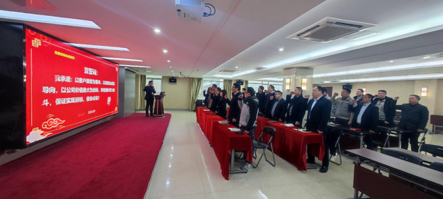 由公司制造總監童總主持儀式,在主持過程中,詳細講解了公司經營目標和經營戰略,并圍繞著如何達成這一目標做了詳細的分析和分享,要有計劃、有規律、有步驟的完成所設定的小目標,才能完成總目標。結束時,童帶領各位領導和精英們宣讀了宣誓詞,這一舉動彰顯了公司對實現既定目標的堅定決心和擔當精神。